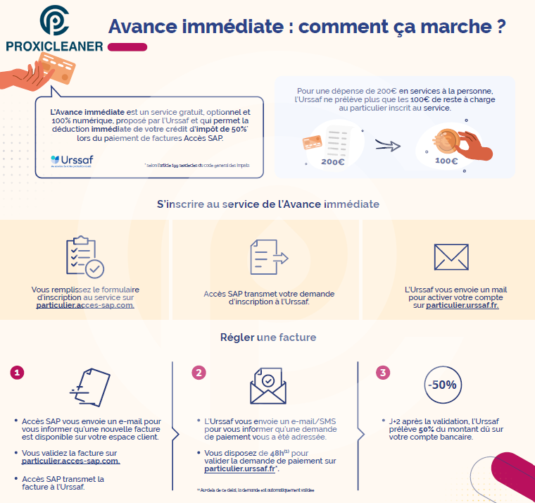 → Vous payez seulement 50 %, l’URSSAF règle le reste directement à Proxicleaner.